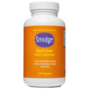 Smidge Beef Liver supplement is a nutrient-dense source of protein, vitamin A, fat-soluble vitamins and minerals, now available in convenient capsule form! Beef liver is one of nature’s most potent traditional foods. Smidge sources from fresh, grass-fed New Zealand cows. While commercial beef liver supplements are dehydrated with heat in a process that breaks down nutrients, ours is freeze-dried in small batches to preserve nutrients. It’s full-fat and as close to nature as possible — and you get all the benefits without the distinct taste and texture of fresh-cooked liver. Smidge Beef Liver capsules are also a source of vitamins B12, B2 (riboflavin) and B9 (folate), plus copper, selenium, iron and choline, and works well with an all-natural, whole-food diet. No additives, fillers or common allergens. Dietary ConsiderationsWheat Free Dairy/ Milk Free Gluten Free Soy Free Yeast Free Preservative Free Free of Artificial Colors/Flavors Egg Free Shellfish Free Fish Free Tree Nut Free Peanut Free Casein Free Serving Size: 4 Capsule Servings Per Container: 30 Amount Per Serving: Beef Liver (Powder) 2000 mg Other Ingredients: Gelatin capsule Take 4 capsules at once, per day, or as directed by a practitioner. Store in a cool, dry place. Do not use if the safety seal is broken or missing. Keep out of reach of children.