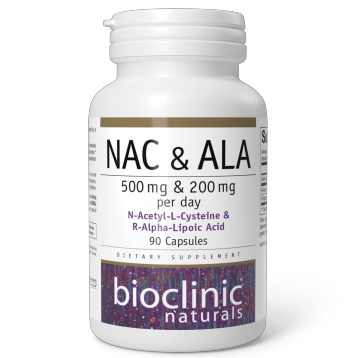 Provides relevant amounts of both N-acetyl-L-cysteine and alpha-lipoic acid. NAC and ALA are involved in antioxidant activity, and maintain the normal synthesis and regeneration of glutathione, the key cellular antioxidant. Supports healthy mitochondrial function as well as normal phase 2 antioxidant enzyme activity. Supports normal endothelial function and maintains nitric oxide synthesis already within the normal range Dietary ConsiderationsNon-GMO Serving Size: 2 Capsule Servings Per Container: 45 Amount Per ServingCalcium (as dicalcium phosphate dihydrate) 250 mg N-Acetyl-L-Cysteine 500 mg R-Alpha-Lipoic Acid 200 mg Other Ingredients: Dicalcium phosphate dihydrate, vegetarian capsule (carbohydrate gum [cellulose], purified water), magnesium stearate (vegetable grade), silicon dioxide, stearic acid 2 capsules per day with a meal or as directed by a health care professional Consult your health care professional prior to use if you are pregnant, trying to become pregnant, breastfeeding, taking medication, have a medical condition, or anticipate surgery. Keep out of reach of children.