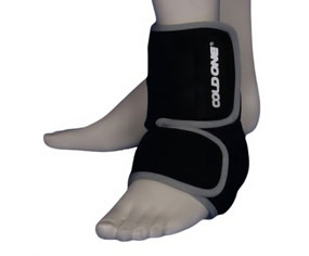Designed to fit like an open toed, open heeled sock, the Cold One® ankle/foot ice wrap provides icing and compression to treat: Twisted, strain or sprained ankle Ankle tendonitis Torn ankle ligaments Post-surgery recovery The high spliced heel design provides added support and compression to injured or strained Achilles Tendons and ligaments. The extended coverage on the top and sides of the foot reduces ankle swelling in hard to reach areas and effectively treats foot sprains and strains as well. The Cold One® ankle/foot ice wrap can be worn two different ways to accommodate the injury site. All Cold One® ice wraps are ready-to-wear when frozen for up to two hours in a residential or commercial freezer and should be used a minimum of 2-3 times per day for maximum benefit. Once applied, the gels will gradually thaw within 15-20 minutes - the length of time recommended by doctors and orthopedic therapists for effective healing - so there is no risk of damage from “over-icing†the tissues or cryoburn to the skin. Orthopedic MDs and Physical Therapists recommend Rest, Ice, Compression and Elevation (R.I.C.E.) for critical and chronic soft tissue injuries such as sprains, strains, torn and stretched ligaments. The cold and compression stop pain and inflammation to the soft tissues and promote faster healing. Cold One® re-freezable ice wraps deliver cold and compression in a single, safe and easy to use neoprene wrap; a combination that drives the cold deeper than leaky ice packs, bags of frozen vegetables, or frozen chemical gel packs. Cold One® cold compression therapy ice wraps are comprised of three low-bulk stretchable layers that drive the cold deep into ligaments and muscles. The outer layer of nitrogen blown neoprene provides insulation and prevents moisture build-up on the outside while the rubber impregnated linen of the inner layer also reduces interior sweating while protecting against cryoburn. The mid layer of strategically sewn in non-toxic flexible gels conform to the body’s curvature for a close comfortable fit while providing cold coverage where it’s needed most.Constructed of non-toxic and non-hazardous FDA approved materials, Cold One® ice wraps are safe to use against the skin. The durable, easy to care for ice wraps can be washed in a home dishwasher (top rack) and the inner layer can be disinfected with an anti-bacterial wipe if used for open wounds or post surgical applications.