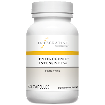 High Potency (100 Billion CFU) Refrigerated Probiotic Enterogenic Intensive 100 is formulated with high-potency probiotics for maximum support of gastrointestinal and immune health. Enterogenic Intensive 100 provides multiple strains of Lactobacilli and Bifidobacteria per each 100 billion CFU capsule. This high-potency formula and delivery system are designed for maximal support. Dietary Considerations Wheat Free Gluten Free Free of Artificial Colors/Flavors Serving Size:1 Capsule Servings Per Container:30 Amount Per Serving Proprietary Probiotic Blend, providing 100 billion CFU:679 mg Lactobacilli Probiotics Lactobacillus casei HA-108 paracasei HA-274 acidophilus R0418 rhamnosus HA-114 rhamnosus HA-111 salivarius HA-118 Bifidobacteria Probiotics Bifidobacterium breve HA -129 bifidum HA-132 longum HA-135 infantis HA-116 NutraFlora scFOS (contains short-chain fructooligosaccharides)75 mg Other Ingredients: Plant-derived capsule (hypromellose), gellan gum, Potato starch, Magnesium stearate, Silica, Ascorbic acid (preservative to maintain freshness) Suggested Use Take 1 capsule daily. May be taken at any time, with or without food, or as recommended by a healthcare professional. Warning Contains milk and soy. If you are pregnant, nursing, or taking prescription drugs, consult a healthcare professional before use. Keep out of reach of children. Safety sealed with inner seal. Do not use if seal is broken or missing. Keep tightly closed. Keep refrigerated to maintain maximum potency.