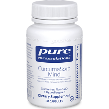 Curcumin and polyphenol blend to promote mood, memory and mental sharpnessCurcumaSorb Mind offers a broad range of polyphenol compounds, including flavonoids, EGCG and oligomeric proanthocyanidins (OPCs) to promote daily cognitive function and emotional wellness. Curcumin and other polyphenols support neuronal stability and function, in part by promoting healthy cytokine balance and antioxidant defenses. Numerous clinical studies indicate that curcumin supports positive mood through these actions, as well as through the promotion of healthy levels of serotonin and dopamine. Animal research suggests that polyphenols may also offer support for occasional stress and mental alertness. In a randomized, double-blind, placebo-controlled trial involving obese individuals, 1,000 mg of a standard curcumin extract promoted relaxation. Curcumin is offered in this formula as the highly bioavailable Meriva curcumin-phosphatidylcholine complex, which utilizes proprietary phytosome technology to increase resistance to degradation in the digestive tract and enhance absorption.Neurophenol is a proprietary blend providing flavonoids from standardized extracts of wild blueberry and whole grape. Animal research suggests a synergistic effect between the grape and blueberry extracts on plasma uptake. These fruits contain neuroprotective polyphenolic compounds that support healthy cognitive function and memory, targeting both vascular strength and elasticity to support healthy neuronal blood flow, as well as synaptic density and plasticity in the brain.Cell and animal studies suggest that Neurophenol supports neuronal function and healthy aging, at least in part by supporting antioxidant defenses, cytokine balance, and healthy gene expression. In a multi-centered, placebo-controlled, randomized, double-blind study on 200 healthy men and women between the ages of 60-70, supplementation with 600 mg Neurophenol per day for 6 months provided significant support for episodic memory and verbal recognition memory. Green tea supports healthy neuronal function through antioxidant properties, cytokine balance, and receptor function, and is theorized to promote healthy hypothalamic-pituitary-adrenal (HPA) function. In a double-blind, placebo controlled study, supplementation with green tea powder was associated with positive mood.• Supports daily cognitive function and emotional well-being • May promote relaxation during occasional stress • Made with fruit extract and green tea extract • Made with hypoallergenic, vegan ingredients  Dietary Considerations Gluten FreeNon-GMO  Serving Size: 2 Capsule  Servings Per Container: 30  Amount Per Serving Meriva turmeric phytosome (Curcuma longa extract (root) and phospholipid complex) (standardized to contain 18% curcuminoids) 300 mg Neurophenol proprietary blend providing flavonoids (monomers, oligomers, flavonols, anthocyanidins and phenolic acids) from grape (Vitis vinifera) extract (fruit) and wild blueberry (Vaccinium angustifolium) extract (fruit) 300 mgMonterey pine (Pinus radiata) extract (bark) 50 mgGreen tea (Camellia sinensis) extract (leaf)(standardized to contain 90% total tea catechins and 70% epigallocatechin gallate (EGCG)) 100 mg90% total tea catechins and 70% epigallocatechin gallate (EGCG)  Other Ingredients vegetarian capsule (cellulose, water), hypoallergenic plant fiber (cellulose)  Suggested Use As a dietary supplement, take 2 capsules, 1-2 times daily, with meals  Warning If you are pregnant or lactating, have any health condition or are taking any medication, consult your health professional before use. Keep out of the reach of children. Store in a cool, dry place. Use only if safety seal is intact.