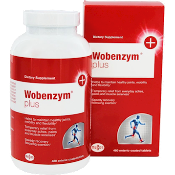 Dietary Supplement- Helps to maintain healthy joints, mobility and flexibility- Temporary relief from everyday aches, pains and muscle soreness- Speedy recovery following exertion Serving Size:2 Tablet Servings Per Container:240    Amount Per Serving Bromlain** (1350 FIB***-units) (from pineapple (stem) Ananas comosus var comosus) 270 mg  Trypsin (4320 FIP***-units) (from porcine (Sus scrofa) or bovine (Bos taurus) pancreas) 144 mg  Rutoside trihydrate (Rutin) (from Styphnoloblum japonicum flower bud) 300 mg   Other ingredients: **From dried purified aqueous extract., **From dried purified aqueous extract., Microcrystalline cellulose, calcium phosphate, hydroxypropyl cellulose, vegetable stearate, enteric coating (sodium alginate, medium chain triglycerides, ethylcellulose, stearic acid, oleic acid, purified water), purified water     Recommended dose: Adults Take 2 tablets twice daily at least 45 minutes before meals with water. Cautions and Warnings: If you have gastrointestinal lesions/ulcers, bleeding disorders,or are taking anticoagulant / blood thinners, anti-inflammatory or antibiotic medications, or are about to have surgery, consult a healthcare practitioner prior to use. Do not use if you are pregnant or breast-feeding. If you experience nausea, vomiting or hypersensitivity / allergic reaction while taking Wobenzym, discontinue use and consult your healthcare practitioner.Store in a cool dry place. DO not use if safety seal is broken or missing. Keep out of reach of children.ÂÂÂÂÂ