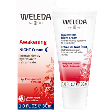 Night time hydration for drier or mature skin A bedtime treatment for mature skin, this rich, moisturizing cream nourishes skin with precious oil from pomegranate seeds. Just as your body and spirit recover during a good night’s rest, your skin drinks in this lovingly-prepared Age Defying Night Cream. Precious pomegranate seed oil is harmonized with borage seed and argan oils, maximizing the skin’s natural night time renewal, to help refresh and reduce the appearance of fine lines and wrinkles. Awake looking lifted, firmer and more radiant. Experience A Complete Regimen Whether your skin needs a pick me up in the morning or night time hydration -- or even if your mind needs a moment of reflection -- this set has the solution. Quickly absorbed Awakening Day Cream will make skin feel radiant and ready for a busy day. Then, Awakening Night Cream intensely moisturizes to refresh skin before bed. For when you need a break during the in between, take a moment to reflect with the free compact mirror included in this set. Pure essential oils help to reduce the appearance of fine lines and wrinkles. Skin looks and feels firmer and stronger.  Ingredients: Water (Aqua), Alcohol, Glycerin, Aloe Barbadensis Leaf Juice, Punica Granatum Fruit Juice, Panicum Miliaceum (Millet) Seed Extract. Prunus Spinosa Wood Extract. Xanthan Gum, Citric Acid, Fragrance (Parfum)*, limonene*, linalool*, Geraniol*, Citral*, Coumarin*. *From natural essential oils  Directions: At bedtime, gently massage into face, neck and decolletage after cleansing and toning. Works best after applying our Weleda Awakening Serum, and with Weleda Awakening Eye Cream. No animal testing Free from parabens and phthalates Free from synthetic preservatives and fragrances ÂÂÂÂÂÂÂ