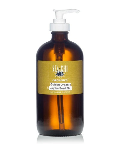 Golden Organic Jojoba is the closest to our own natural body oil. Natural sunscreen (approx. 10 SPF) Softens Moisturizes mature dry skin. Controls Acne Used as a treatment for crows feet, wrinkles and stretch marks. Leaves your skin with a greaseless, healthy glow.