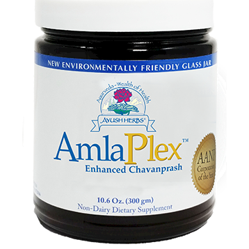 Amla Plex is a sweet, mildly spicy spread made from an ancient recipe known as chavanprash, enhanced with extra amla, a fruit native to India. Our formula retains its natural color and has not been processed, or altered. Suggested Use 1 tsp daily. Consult your healthcare provider before using this or any other supplement. Can be stored at room temperature after opening. Serving Size: 1 Teaspoon Servings Per Container: 30 Amount Per Serving % Daily Value Calories 28 Total Carbohydrate 6 g 2% Total Sugars 4 g Sodium 6.6 mg 1% Proprietary Blend: 10 mg Amlao fruit Honey Raw cane sugar Sesame oil Cinnamon bark Long Pepper Fruit Indian cassia leaves Adder's mouth orchid bulb Bael tree fruit Boerhaavia herb Chebulic myrobalano fruit Clerodendrum phlomidis root Cyperus root Habenaria (Habenaria intermedia) root Indian elecampane root Indian tinospora stem Indian Kudzu root Malabar tree nut leaves Leptadenia root Malay bush beech root Oroxylum root Phyllanthus herb Polygonatum cirrhifolium rhizome Sarivan root Tribuluso fruit Three-lobe-leaf cowpea herb Prishnaparni (Uraria picta) herb Ashwagandha root White Himalayan Lily (Lilium polyphyllum) root Yellow-fruit nightshade herb Water Clove flower Blue wiss herb Jeevak (Microstylis wallichii) bulb Cardamom fruit Mesua stamens Spanish pellitory fruit Warnings During pregnancy or lactation, please consult your physician before use. is product is sealed for your protection. Keep away from reach of children.