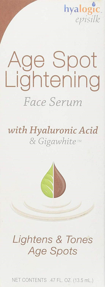 Hyalogic’s Age Spot Face Serum is a combination of Hyaluronic Acid and Gigawhite designed to hydrate your skin while lightening the appearance of age spots. Soothe, nourish and rejuvenate your skin while lightening the appearance of age spots.  Ingredients: Water, Vegetable Glycerin, Malva Sylvestris (Mallow) Extract, Mentha Piperita (Peppermint) Leaf Extract, Primula Veris Extract, Alchemilla Vulgaris Extract, Veronica Officinalis Extract, Melissa Officinalis Leaf Extract, Achillea Millefolium Extract (Gigawhite), Sodium Hyaluronate (Hyaluronic Acid), Xanthan Gum, Silicate, Chamomile Extract, Green Tea Extract, Glucose, Lactoperoxidase, Glucose Oxidase  Directions: After cleansing in the morning or evening, lightly dampen your face and apply to the desired areas. For greater support, use twice daily in conjunction with Pure Hyaluronic Acid or Coenzyme Q10 Serums. For external use only. Keep out of reach of children.