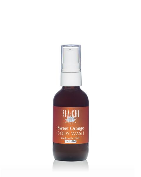 Directions Let the scent of this body wash lift your spirits and wash away your tension. Even if you have just a few moments for your bath or shower, you can create a mindful and intentional bathing experience to sooth and uplift your body, mind and Spirit. Squeeze a small amount of body wash into your hands and work into a lather. Use all over your body, as well as a gentle shampoo. For an aromatherapy bubble bath, pour a few capfuls under running water and unwind in the bubbles. General Precautions We recommend that you consult with a qualified healthcare practitioner before using herbal products, particularly if you are pregnant, nursing, or on any medications. Persons with allergies should exercise caution. Ingredients Common Name: Decyl Glucose, Lauryl Glucose, Coco Protein, Seaweed Extract, Organic Herbal Infusions of Coltsfoot, Chickweed, Nettles, Horsetail, Slippery Elm, Marshmallow Root, Comfrey Root, Calendula Blossoms, Chamomile Flowers, and Oatstraw, Sea Buckthorn CO2, Grapefruit Seed Extract, Kombucha Tea, and Essential Oils of Sweet Orange from the USA. Botanical Name (INCI): Decyl Glucoside, Lauryl Glucoside, Coco-Glucoside, Fucus Vesiculosus (Seaweed) Extract, Tussilago Farfara (Coltsfoot) Leaf Extract, Stellaria Media (Chickweed) Extract, Urtica Dioica (Nettle) Extract, Equisetum Arvense (Horsetail) Extract, Ulmus Fulva (Slippery Elm) Extract, Althaea Officinalis (Marshmelow Root) Extract, Symphytum Officinale (Comfrey) Root Extract, Calendula Officinalis Flower Extract, Matricaria Recutita (German Chamomile) Flower Extract, Avena Sativa (Oat) Straw Extract, Hippophae Rhamnoides (Seabuckthorn) Fruit Extract, Citrus Paradisi (Grapefruit) Seed, White Fermented Tea (Kombucha), Citrus Sinensis (Sweet Orange) Peel Oil Gentle and mild plant-based surfactants. Denotes Organic Wildcrafted (INCI) International Nomenclature of Cosmetic Ingredients No GMOs, sodium lauryl or laureth sulfates, petroleum-based products, parabens, phthalates, artificial dyes or synthetic ingredients or fragrances.