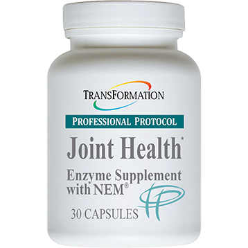 Transformation’s clinical belief is to look first to a balanced diet which provides the nutrition we need for well-being and health. However, many times we find diet alone is not enough. Our modern lifestyle can affect our food choices, digestion, and absorption of nutrients. Supplementation is required for a healthy skeletal and muscular system, and Transformation Enzyme has searched and found food sources that provide specific nourishment for the joints and connective tissues.• NEM brand eggshell membrane. This food source of glucosamine, chondroitin, dermatan, keratan sulfate, hyaluronic acid, and other naturally occurring glycosaminoglycans and key bioactive proteins like collagen has been shown to support joint comfort and flexibility.• Protease Blend. Transformation’s systemic protease enzymes promote overall cardiovascular, muscular, and immune system health along with improved protein digestion for increased bio-availability of amino acids and healthy elimination.• Lipase. The lipase enzymes in Joint Health help break down and utilize the fats in the eggshell membrane for improved tissue absorption.Health Benefits: Transformation’s Professional Protocol Joint Health is a unique once-daily formula designed to supply nourishment for joint mobility and support the healthy production of cartilage and connective tissues.Serving Size: 1 CapsuleServings Per Container: 30Amount Per ServingTzyme Protease Blend (Protease and peptidase) (68,750 HUT) 175 mgLipase (250 FIP) 25 mgNEM brand eggshell membrane 500 mgOther Ingredients:Cellulose, Beet Root Fiber, WaterRecommended Usage: One (1) capsule per day with at least 8 oz. of liquid or as directed by a health care practitioner. Contents may be removed from capsule and taken by spoon immediately after mixing with a small amount of tepid water.Store tightly sealed in a cool, dry place. Keep out of reach of children.