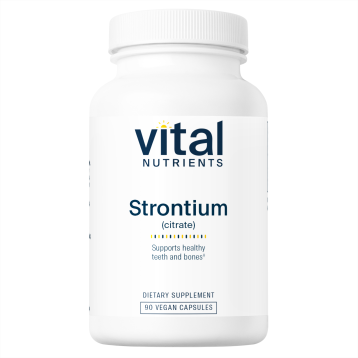 • Supports healthy teeth and bones• Promotes replication of preosteoblastic cells• May be used in conjunction with Osteo-Nutrients or Osteo-Nutrients II Strontium (citrate) is an alkali earth metal, very similar in structure to Calcium, and has a similar effect in the body. 99% of Strontium is located in the teeth and bones where it promotes replication of preosteoblastic cells, which maintain bone health. Strontium is an excellent adjunct to other promoters of healthy teeth and bones. Osteo Nutrients or Osteo Nutrients II are complementary formulas that enhance the benefits of Strontium Citrate since Strontium is most beneficial when combined with adequate Calcium and Vitamin D.  Dietary Considerations Wheat Free Dairy/ Milk Free Gluten Free Soy Free Sugar Free Egg Free  Suggested Use Take 3 capsules daily as recommended by your healthcare professional. For maximum absorption do not consume with calcium supplements or high calcium foods.  Serving Size: 3 Vegetable Capsule  Servings Per Container: 30  Amount Per Serving Strontium (as strontium citrate) 681 mg  Other Ingredients Vegetable Cellulose Capsule, Magnesium Silicate, Cellulose, Ascorbyl Palmitate, Leucine  Warnings Store sealed in a cool dry place.keep out of reach of children. Use only if safety seal is intact.If pregnant, consult your physician before taking.Excludes: Coatings, binders, gluten (wheat, rye, barely), milk/dairy (casein/whey), soy protein, egg protein, sugar