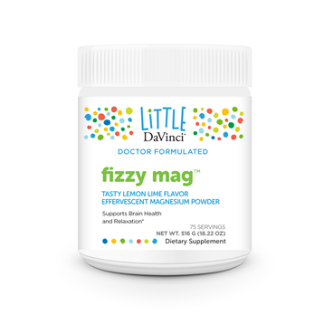 Supports Brain Health and RelaxationLittle DaVinci offers doctor formulated supplements that enhance the health and well-being of kids using quality ingredients. Their tasty formulas are made in collaboration with top pediatric and nutritional experts, delivering high bioavailability with flavors kids love. Good health has never tasted so great.Dietary ConsiderationsGluten FreeVegetarianPreservative FreeFree of Artificial Colors/FlavorsServing Size: 1 ScoopServings Per Container:Â 75Amount Per Serving % Daily ValueCalories 20Total Carbohydrates 5 g 2%Calcium (as Tricalcium Phosphate) 19 mg 2%Potassium (as K Bicarbonate) 390 mg 8%Riboflavin (Vitamin B2) 8 mg 615%Magnesium (as Mg Citrate) 420 mg 100%Stevia Leaf Extract 35 mgOther Ingredients: citric acid, evaporated cane juice, silica, natural lemon flavorAs a dietary supplement, children age 4 and older take 1 scoop (6.88 g) in water daily, preferably in the evening, before bed, or as directed by your healthcare practitioner.If your child has any health conditions, consult your healthcare practitioner before taking this product.Caution: Jar contains desiccant to reduce moisture and clumping. Do not eat desiccant.Storage: Store in a cool, dry place. Do not refrigerate. If inner seal is broken, do not use.This product is packaged by weight, not by volume. Some settling may occur. Color, flavor and sweetness of this product may vary due to variations of the natural ingredients.