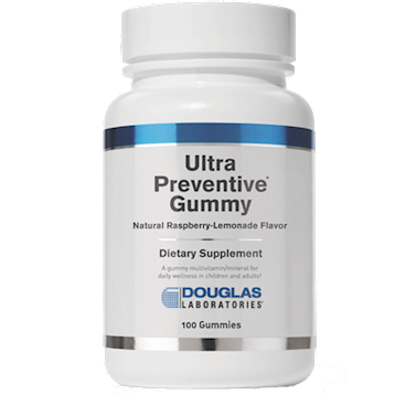 A gummy multivitamin/mineral for daily wellness in children and adults*Ultra Preventive Gummy is a tailored blend of 17 essential nutrients, including choline and Metafolin L-5-methyltetrahydrofolate (L-5-MTHF), enhanced with organic fruits in a convenient, great-tasting, chewable gummy for both children and adults. Ultra Preventive Gummy uses pure, hypoallergenic ingredients without artificial colors, flavors or preservatives. One gummy contains 0.5 g of sugar, less than other chewable multivitamins on the market, using a low-glycemic, plant-based prebiotic fiber and natural sweeteners. Dietary ConsiderationsGluten FreeNon-GMO Serving Size: 2 Piece Servings Per Container: 50 Amount Per Serving% Daily ValueCalories15Total Carbohydrate4 g3%Total Sugars1 gIncludes 1 g of added sugars (2 gummy dose)4%Vitamin A (as vitamin A palmitate and 60% beta carotene)375 mcg125%Vitamin C (as ascorbic acid)40 mg267%Vitamin D (as cholecalciferol) (500 IU)12.5 mcg83%Vitamin E (as d-alpha tocopherol acetate)5 mg84%Vitamin K160 mcg200%Riboflavin0.85 mg170%Niacin (as niacinamide)5.5 mg92%Vitamin B6 (as pyridoxine HCI)2.5 mg500%Folate (as Metafolin, L-5-MTHF) DFE (120 mcg L-5-MTHF)200 mcg133%Vitamin B12 (as methylcobalamin)50 mcg5556%Biotin50 mcg625%Pantothenic acid (as calcium pantothenate)2.5 mg125%Choline (as choline bitartrate)15 mg8%Iodine (as potassium iodide)56 mcg62%Zinc (as zinc citrate)4.5 mg150%Chromium (as chromium picolinate)25 mcg227%Sodium (naturally occurring)12 mg1%Thiamine (as thiamine mononitrate)0.75 mg150%Organic Berry/Fruit Blend:50 mgStrawberry FruitRaspberry FruitBlueberry FruitTart Cherry FruitPomegranate FruitCranberry FruitOrange FruitLemon Fruit Other Ingredients:Isomalto-oligosaccharides, purified water, apple puree, cane sugar, pectin, natural raspberry and lemon flavors, citric acid, sodium citrate, natural black carrot color, organic stevia leaf extract, organic sunflower oil, carnauba wax, medium chain triglycerides, hydroxypropyl cellulose, glycerinAs a dietary supplement, children ages 2 to 3, take 2 gummies daily with a meal. Ages 4 and up, take 4 gummies daily with meals or as directed by your health professional.If you are pregnant, or nursing, or if you are taking prescription medications, consult your health professional before using this product. Consult a health care practitioner prior to use if you are taking blood thinners. Keep out of reach of children.Contents may not fill package in order to accommodate required labeling. Please rely on stated quantity. Storage: Store in a cool, dry place. Use only if safety seal is intact.