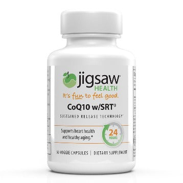 MICROACTIVE COQ10 IS CLINICALLY PROVEN FOR: Superior bioavailability 24-hour time release Universally enhanced absorption in all users MicroActive CoQ10 complex in crystalline form supports uniform absorption and time release claims. In addition, if taken at higher doses, claims for heart and circulatory health benefits can be made, and can provide assurance of doubling CoQ10 levels in three weeks.* WHAT IS MICROACTIVE COQ10? MicroActive CoQ10 w/SRT uses non-GMO potato starch converted to ß-cyclodextrin. The ß-cyclodextrin is what encapsulates the CoQ10, allowing the CoQ10 to become water-dispersible. This ensures better, more efficient absorption in the body. WHY DO CYCLODEXTRINS INCREASE THE BIOAVAILABILITY OF MICROACTIVE COQ10? CoQ10 has poor bioavailability in the body because the molecule size is too large to pass through the intestinal wall for absorption. Jigsaw MicroActive CoQ10 w/SRT solves this issue by using cyclodextrins in the manufacturing process. Each molecule of CoQ10 is joined with two cyclodextrin molecules, forming a complex. In the process of forming the complex, CoQ10 is reduced to its molecular size. The CoQ10 molecules are then prevented from reaggregating because the cyclodextrin in the complex keeps them separated, making the MicroActive CoQ10 micronized. The second benefit derived from cyclodextrins is that they render the hydrophobic CoQ10 molecule water-dispersible. This happens because the CoQ10 enters the hydrophobic cavity in the cyclodextrin molecule. The outer surface of the cyclodextrin is hydrophilic, which makes the molecule water-soluble/dispersible. Thus, the complex of the two becomes water-soluble and more easily transported to the absorption site in the small intestines.  Servings Per Container: 60 As a dietary supplement, take 1 veggie capsule daily, or use as directed by your healthcare professional. Serving Size: 1 Capsule  Amount Per Serving Coenzyme Q10 .... 100mg (60mg CoQ10 as MicroActive CoQ10 and 40mg as CoQ10)  Other Ingredients: Cellulose (plant based insoluble fiber for bulk), ß-cyclodextin (facilitates Sustained Release), Hydroxypropyl Methylcellulose (capsule shell), Silica & Magnesium Stearate (Synergistic anti-caking agents)