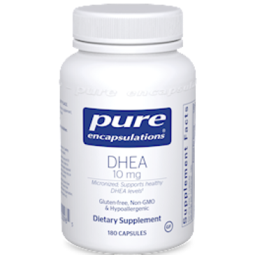 Micronized; supports healthy DHEA levelsDHEA, dehydroepiandrosterone, is the most abundant adrenal steroid hormone in the body. After it is made by the adrenal glands, it travels into cells throughout the body, where it is converted into androgens and estrogens. These hormones regulate fat and mineral metabolism, endocrine and reproductive function, and energy levels. The amount of each hormone to which DHEA converts to depends on an individual's biochemistry, age, and sex. DHEA levels peak around age 25 and then decline steadily. DHEA supplementation supports emotional well-being and immune function. Supports emotional well-being and immune function Made with 99% pure, pharmaceutical-grade DHEA Made with hypoallergenic, vegan ingredients Dietary Considerations Gluten FreeNon-GMO Serving Size: 1 Capsule Servings Per Container: 180 Amount Per Serving DHEA (dehydroepiandrosterone, C19H28O2) 10 mg Other Ingredients hypoallergenic plant fiber (cellulose), vegetarian capsule (cellulose, water) Suggested Use As a dietary supplement, take 1 capsule daily, with a meal. Warning Not for use by persons under the age of 18. Do not use if pregnant or nursing. Consult a physician or licensed qualified healthcare professional before using this product if you have, or have a family history of breast cancer, prostate cancer, prostate enlargement, heart disease, low "good" cholesterol (HDL), or if you are using any other dietary supplement, prescription drug, or over-the-counter drug.Do not exceed the recommended serving. Exceeding the recommended serving may cause serious adverse health effects. Possible side effects include acne, hair loss, hair growth on the face (in women), aggressiveness, irritability, and increased levels of estrogen. Discontinue use and call a physician or licensed qualified health care professional immediately if you experience rapid heart beat, dizziness, blurred vision,or other similar symptoms.KEEP OUT OF REACH OF CHILDREN. Store in a cool, dry place.Caution athletes: DHEA is classified as a prohibited substance by certain sports organizations, as well as the World Anti-Doping Association (WADA). Please consult the rules of your specific organization to determine if DHEA is prohibited.