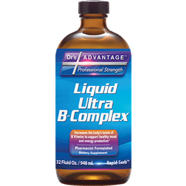 Dietary SupplementIncreases the body’s levels of B Vitamins to support healthy mood and energy production*Ultra B-Complex contains a full spectrum of the vital B complex vitamins. This highly absorbable, professional strength formula is designed to increase the body’s levels of these energy producing vitamins.*Supports normal energy production and healthy mood*High PotencyRapid-Sorb Enhanced Absorption Dietary ConsiderationsWheat FreeDairy/ Milk FreeGluten FreeSoy FreeYeast FreeStarch FreeSalt FreeEgg FreeNon-GMO Serving Size:1 Tablespoon Servings Per Container:64 Amount Per Serving Calories 20  Total Carbohydrate 5 g 2%Sugar 5 g  Thiamin (as Thiamin Hydrochloride) 50 mg 3333%Riboflavin (Vitamin B2) 25 mg 1470%Niacin (as Niacinamide) 60 mg 300%Vitamin B6 (as Pyridoxine Hydrochloride) 50 mg 2500%Folate (as Folic Acid) 400 mcg 100%Vitamin B-12 (as Cyanocobalamin) 400 mcg 6667%Biotin 300 mcg 100%Pantothenic Acid (as D-Calcium Pantothenate) 250 mg 2500%Choline Bitartrate 50 mg  Inositol 50 mg  Para aminobenzoic Acid 50 mg   Other ingredients: Filtered Water, Crystalline Fructose, Vegetable Glycerin, Natural Flavor Blend and/or other Natural Juice Concentrated Extracts, Citric Acid, Xanthan Gum, Potassium Sorbate (to preserve freshness), LoHan Guo Extract, Potassium Benzoate (to preserve freshness)     Directions: Shake well before using. Refrigerate after opening to preserve freshness. Adults take one tablespoon daily. May be mixed with 1 oz of water or juice. Product has been sealed for your protection.Contains no yeast, starch, wheat, soy, gluten, eggs, salt or dairy; Non-GMO Warnings: Do not use if the safety seal around the cap has been broken or is missing. Keep out of reach of children. Keep out of direct light or heat.ÂÂ