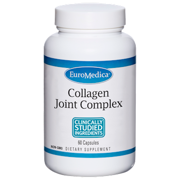 Collagen Joint Complex delivers five powerful nutrients that support strong, flexible joints and help preserve cartilage and collagen— the “shock absorbers” of your knees, ankles, lower back, and hips. Type II Collagen Glucosamine & Chondroitin Hyaluronic Acid Complex Clinically Studied Boswellia Dietary Considerations Wheat Free Dairy/ Milk Free Gluten Free Soy Free Yeast Free Sugar Free Preservative Free Salt Free Corn Free Free of Artificial Colors/Flavors Serving Size: 3 Capsule Servings Per Container: 20 Amount Per Serving Proprietary Blend:1740 mg Glucosamine hydrochloride Chondroitin sulfate Hyaluronic acid complex (hyaluronic acid, polysaccharides, and collagen) Boswellia (Boswellia serrata)450 mg Gum Resin Extract (BOS-10/BosPure) standardized to contain 70% Total Organic and Boswellic Acids with AKBA 10%, with 5% beta-boswellic acids Native Type II Collagen40.5 mg Other Ingredients hydroxypropyl methylcellulose (vegetable cellulose capsules), cellulose powder, silica, vegetable source magnesium stearate, Contains shellfish (crab, shrimp) Suggested Use Take 3 capsules daily, or as directed by your healthcare practitioner. Warnings If pregnant or nursing, consult a healthcare practitioner before use.
