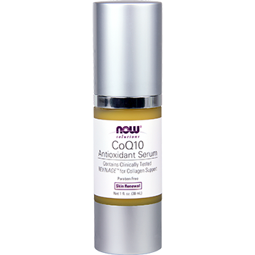 Description Condition: Skin in need of extra attention, especially around eyes, mouth and forehead where there is a loss of elasticity. Solution: CoQ10 Antioxidant Serum contains CoQ10 & REVINAGE to visibly firm, smooth, and renew skin tone. Contains Clinically Tested REVINAGE for Visible Firming  Suggested Use: After cleaning and toning the skin, apply serum to areas where needed, then apply a moisturizer. Use the AM & PM for best results.  Ingredients: Deionized water, aloe vera (aloe barbadensis) leaf gel*, vegetable glycerine, xanthan gum, soy lecithin, CoQ10 (Co-enzyme Q10, natural all-trans form), wheat germ oil, GABA, avocado oil, benzyl alcohol, phenoxyethanol, sweet almond oil, sodium hyaluronate (hyaluronic acid), L-carnosine, cedar bark extract and green tea.  Warnings Certified Organic NOW does not teast on animals.