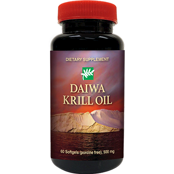 What is Daiwa Krill Oil? Daiwa Krill Oil is a super antioxidant composed of pure oil derived from Antarctic krill. Krill are plentiful, tiny, bright pink,shrimp-like crustaceans. Krill oil is the only marine oil that includes a combination of three (3) key substances the human body needs to function properly: omega-3 essential fatty acids(EPA and DHA), phospholipids (an important component of the cell membranes) and antioxidants including astaxanthin (a potent carotenoid that gives krill its red-orange color). Daiwa Krill are harvested responsibly.  How does Daiwa Krill Oil work? Krill oil provides the body's best source of omega-3 essential fatty acids. It is rich in phospholipid EPA and DHA providing greater bio-availability, superior to fish and flax oils. Krill oil also delivers the fatty acids omega-6 and omega-9, as well as vitamins A and E. Better choice than fish or other marine oils: Krill Oil and fish oil are both sources of Omega-3 fatty acids. In krill oil, however, the EPA and DHA Omega-3s are bound to phospholipids. Phospholipids are natural, integral parts of cells and cell membranes. In contrast, fish oil has EPA and DHA bound to triglycerides, which are in the form of fats the body stores as body fat for use as energy in the future. The phospholipid form of Omega-3s is better utilized by the body to promote cellular function than triglyceride Omega-3s, which are primarily used for energy consumption. It should be noted that triglycerides don’t disperse in fluids and have a tendency to float to the top of the stomach fluids, which can result in fishy burps, often associated with fish oil supplements. By comparison, phospholipids Omega-3s do disperse in water and are easily absorbed in the stomach fluids, as a result, there is no fishy aftertaste with krill oil. In addition, the Omega-3s provided from krill oil are more bio-available and more efficient than Omega-3s derived from fish oil and other marine oils.  Who needs Daiwa Krill Oil? All adults who are seeking any of the benefits presented above. All adults taking fish oils pursuing an alternative source of omega-3 fatty acids without the after taste. Benets of Daiwa Krill Oil: • Superior Source of DHA and EPA Omega-3s • Greater bio-availability than fish oil • Promotes heart, joint, and brain health • Source of Astaxanthin, a powerful antioxidant • Relives discomfort from PMS • Eases the transition into menopause • No fishy aftertaste  Serving Size: 2 SoftGel  Servings Per Container: 30  Amount Per Serving Krill Oil1000 mg Omega-3 Fatty Acids336 mg Eicosapentaenolic Acid (EPA)182 mg Docosahexaenoic Acid (DHA)104 mg Other Omega-3 Fatty Acids90 mg Omega-6 Fatty Acids28 mg  Other Ingredients: Bovine Gelatin (softgel), Glycerin, Purified Water  Suggested Use Take two (2) softgels daily, one (1) in the morning and one (1) at night.  Warning Do not use if tamper-resistant safety seals outside the bottle and under the cap are broken or missing. Keep out of the reach of children. Contains Crustacean shellfish. Consult your healthcare professional before use if you are pregnant, lactating, taking prescription medication or have seafood allergies.