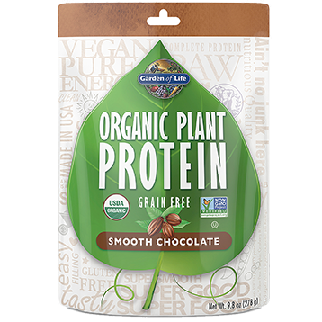 We source clean, pure ingredients from organic family farms to bring you the best nutritional products in the world. Super smooth and delicious, our family friendly Grain Free Organic Plant Protein is packed with energy-giving protein and wholesome fiber -15 g of complete protein -Smooth, with no gritty texture -Tasty and flavorful -Includes essential fatty acids, probiotics and enzymes Dietary ConsiderationsDairy/ Milk FreeGluten FreeOrganicSoy FreePreservative FreeVeganFree of Artificial Colors/FlavorsNon-GMO Serving Size:1 Scoop Servings Per Container:10 Amount per serving: Calories 110 Calories from Fat 20 Total Fat 2.5 g Polyunsaturated Fat 1 g Monounsaturated Fat 1 g Saturated Fat 0 g Sodium 180 mg Potassium 140 mg Total Carbohydrate 6 g Dietary Fiber 3 g Soluble Fiber 1 g Insoluble Fiber 2 g Sugars 1.5 g Protein 15 g Ingredients: Certified Organic Plant Protein Blend: [Organic Pea (seed), Organic Flax (seed), Organic Cranberry (seed), Organic Baobab (fruit), Organic Moringa (leaf), Organic Chia (seed), Organic Pumpkin (seed)], Organic Cacao, Organic flavors (chocolate & vanilla). Organic Stevia Extract (leaf). RAW Enzyme Blend: (Lipase, Protease, Aspergillopepsin, beta-Glucanase, Cellulase, Bromelain, Phytase, Lactase, Papain, Peptidase, Pectinase, Xylanase, Hemicellulase). Organic Cinnamon, Sea Salt. RAW Probiotic Blend: [Lactobacillus plantarum. Lactobacillus bulgaricus] 1 Billion CFU Directions: Mix 1 level scoop in 8 ounces of water (scoop included). Delicious with unsweetened almond or rice milk.-Gluten free, with no allergenic ingredients like soy, wheat, and dairyContains no dairy, soy, tree nuts, added sugars, filler ingredients, artificial flavorings, colors, sweeteners or preservatives.Store in a cool, dry place. Do not use if seal is damaged or missing. Packaged by weight, not volume. Settling may occur. ÂÂ