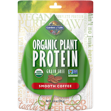 We source clean, pure ingredients from organic family farms to bring you the best nutritional products in the world. Super smooth and delicious, our family friendly Grain Free Organic Plant Protein is packed with energy-giving protein and wholesome fiber -15 g of complete protein-Smooth, with no gritty texture-Includes essential fatty acids, probiotics and enzymes -Gluten free, with no allergenic ingredients like soy, wheat and dairy Dietary ConsiderationsDairy/ Milk FreeSoy FreePreservative FreeFree of Artificial Colors/FlavorsNon-GMO Serving Size:1 Scoop Servings Per Container:10 Amount Per ServingCalories 100Calories from Fat 20Total Fat 2 gPolyunsaturated Fat 1 gMonounsaturated Fat .5 gSaturated Fat 0 gSodium 150 mg Potassium 140 mg Total Carbohydrate 5 gDietary Fiber 4 gSoluble Fiber 2 gInsoluble Fiber 2 gSugars less than 1 gProtein 15 g Ingredients: Certified Organic Plant Protein Blend: [Organic Pea (seed), Organic Flax (seed), Organic Cranberry (seed), Organic Baobab (fruit), Organic Moringa (leaf), Organic Chia (seed), Organic Pumpkin (seed)], Organic Arabica Coffee, Organic Marley Coffee, Organic Vanilla Flavor, Organic Stevia Extract (leaf), Organic Cinnamon, RAW Enyzme Blend: Lipase, Protease, Aspergillopepsin, beta-Glucanase, Cellulase, Bromelain, Phytase, Lactase, Papain, Peptidase, Pectinase, Xylanase, Hemicellulase, RAW Probiotic Blend: [Lactobacillus plantarum, Lactobacillus bulgaricus] 1 Billion CFU Directions: Mix 1 level scoop in 8 ounces of water (scoop included). Delicious with unsweetened almond or rice milkContains no dairy, soy, tree nuts, added sugars, filler ingredients, artificial flavorings, colors, sweeteners, or preservatives. Contains 20 mg of naturally occurring caffeine per servingStore in a cool, dry place. Do not use if seal is damaged or missing. Packaged by weight, not volume. Settling may occur. ÂÂ