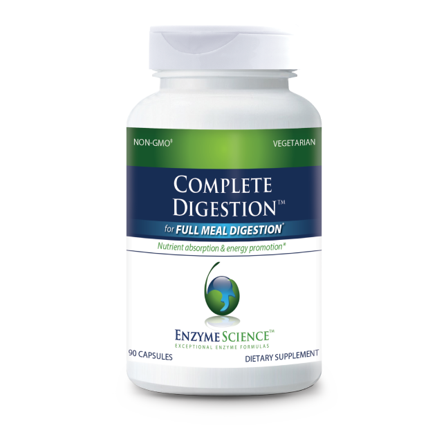 Dietary Supplement Complete Digestion combines vegetarian enzymes and probiotics to provide support for common mild to moderate digestive discomforts.* This comprehensive formula assists with digesting protein, fat, fiber and carbohydrates essential for assimilation and digestive wellness.* Thera-blend enzymes are scientifically designed to provide optimal solutions for digestive health and wellness. These enzymes are comprised of multiple variants which are blended to work synergistically throughout the broad pH range of the human body.  Dietary Considerations Wheat Free Dairy/ Milk Free Gluten Free Soy Free Yeast Free Preservative Free Salt Free Corn Free Free of Artificial Colors/Flavors Egg Free  Serving Size:1 Vegetable Capsule  Servings Per Container:90   Amount Per Serving Amylase Thera-blend 11500 DU  ATPro Blend (Magnesium Citrate, CoQ10, Phytase, ATP) 78 mg  Magnesium Citrate   CoQ10   Phytase   ATP   Protease Thera-blend HUT 45000  Glucoamylase AGU 25  DPP-IV DPPU 100  Pectinase Endo-PGU 75  Lactase ALU 800  Lipase Thera-blend 1500 USP/FIP  Cellulase Thera-blend CU 500  Alpha Galactosidase 100 GaIU  Maltase DP 100  Invertase SU 305  Probiotic Blend Million 125 CFU  DE111 Bacillus subtilis   Lactobacillus L. paracasei  L. plantarum L. gasseri L. rhamnosus L. casei L. acidophilus DDS-1 L. bulgaricus Xylanase XU 100   Other ingredients: 100% Vegetarian Capsule (Cellulose, water), water     Recommended Dose: Take 1 capsule per meal (with the first bite of food). More may be taken as recommended by your healthcare practitioner.  Contains No: egg, dairy, preservatives, salt, sucrose, soy, wheat, yeast, nuts, corn, gluten, casein, potato, artificial colors or flavors. No Excipients, Binders, Fillers. Vegetarian. Non-GMO. Keep closed in dry place; avoid excessive heat. As with all products, please keep out of reach out children. ÂÂÂÂÂ