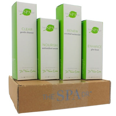 This 4-step system is designed to cleanse, nourish, protect and revitalize your skin and is suitable for all skin types. It is clean and non-toxic, without any hidden harmful ingredients.Dr. Spa uses the science of natural beauty in The Spa Dr. skincare products. They are carefully pH balanced to promote a healthy skin microbiome to protect and enhance your skin health. What this does is ensure you have clear skin and graceful aging.Use The Spa Dr.’s Daily Essentials twice a day - to awaken skin in the morning and promote cellular recovery at night. The system is designed to be a 30 day supply and we recommend delivery every four weeks. Step 1: Gentle CleanserIngredients: Argania Spinosa (Argan) Kernel Oil*, Prunus Amygdalus Dulcis (Almond) Oil, Arnica Montana (Arnica) Flower Extract*, Aqua (Water), Aloe Barbadensis (Aloe) Leaf Juice Powder*, Cocos Nucifera (Coconut) Oil*, Helianthus Annuus (Sunflower) Seed Oil*, Glycerin, Sucrose Laurate, Glyceryl Behenate.*OrganicStep 2: Antioxidant SerumIngredients: Aqua (Water), Aloe Barbadensis (Aloe) Leaf Juice Powder*, Ananas Sativus (Pineapple) Fruit Extract*, Malpighia Glabra (Acerola Cherry) Fruit Extract*, Chlorella Vulgaris (Green Algae) Extract*, Pichia/Resveratrol Ferment Extract, Sodium Hyaluronate, Olea Europaea (Olive) Leaf Extract*, Rosmarinus Officinalis (Rosemary) Leaf Extract*, Citrus Aurantium Bergamia (Bergamot) Fruit Oil*, Cananga Odorata (Ylang Ylang) Flower Oil*, Citrus Nobilis (Mandarin) Peel Oil*, Litsea Cubeba (May Chang) Fruit Oil*, Amethyst Powder, Pullulan, Lysolecithin, Sclerorium Gum, Xanthan Gum, Phytic Acid, Citric Acid, Gluconolactone, Sodium Benzoate, Calcium Gluconate, Citral°, Limonene°, Linalool°*Organic° Components of 100% pure natural steam distilled/cold-pressed essential oilsStep 3: Enriched MoisturizerIngredients: Aqua (Water), Aloe Barbadensis (Aloe) Leaf Juice Powder*, Camelina Sativa (Camelina) Seed Oil*, Argania Spinosa (Argan) Kernel Oil*, Helianthus Annuus (Sunflower) Seed Oil*, Aspalathus Lineais (Green Rooibos) Leaf Extract*, Camellia Sinensis (Black Tea) Leaf Extract*, Camellia Sinensis (White Tea) Leaf Extract*, Pichia/Resveratrol Ferment Extract, Curcuma Longa (Turmeric) Root Extract, Sodium Hyaluronate, Cetyl Alcohol, Cetearyl Olivate, Sorbitan Olivate, Eleutherococcus Senticosus (Ginseng) Root Extract*, Hippophae Rhamnoides (Sea Buckthorn) Fruit Oil*, Citrus Nobilis (Mandarin) Peel Oil*, Citrus Aurantium Bergamia (Bergamot) Fruit Oil*, Litsea Cubeba (May Chang) Fruit Oil*, Cananga Odorata (Ylang Ylang) Flower Oil*, Tocopherol, Phytic Acid, Gluconolactone, Sodium Benzoate, Calcium Gluconate, Citral°, Limonene°, Linalool°*Organic° Components of 100% pure natural steam distilled/cold-pressed essential oilsStep 4: Glow BoostIngredients: Vaccinium Macrocarpon (Cranberry) Seed Oil*, Punica Granatum (Pomegranate) Seed Oil*, Rubus Idaeus (Raspberry) Seed Oil*, Rosa Canina (Rosehip) Fruit Oil*, Prunus Armeniaca (Apricot) Kernel Oil*, Ubiquinone (CoQ10), Tocopherol, Rosmarinus Officinalis (Rosemary) Leaf Extract**Organic