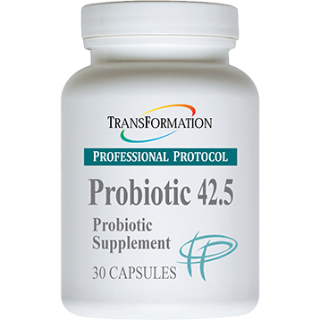 The demand has never been greater for a maximum strength probiotic formula. Beneficial bacteria often become imbalanced by poor diet choices and environmental lifestyle stressors. Issues can arise when opportunistic microorganisms feed on undigested food molecules, creating gas. This carefully mixed selection of GI stable and heat stable microorganisms mirrors the ratios found in a healthy GI tract. These organisms enhance the ecological balance of friendly bacteria, benefiting digestion, elimination, and immune function by populating the gut with the “friendly†naturally occurring bacteria vital to our overall health.• Probiotic Blend. This comprehensive probiotic formula includes ten different strains of bacillus, lactobacillus, and bifidobacterium microorganisms totaling 42.917 billion colony forming units (cfu) of activity per capsule.• “Friendly†Bacteria. Optimal flora supports relief from occasional GI discomfort, reduces problems associated with lactose intolerance, and encourages healthy and timely elimination by acting as a natural stool softener.* Probiotics also support production of enzymes such as protease, lipase, and lactase, further encouraging more complete digestion.• Jerusalem Artichoke. This tuber is a prebiotic plant fiber that supplies nourishment for good bacteria.Health Benefits: Transformation’s Professional Protocol Probiotic 42.5 is a probiotic supplement designed to help promote gastrointestinal system health, assist with regularity, and support a healthy immune system.Serving Size: 1 CapsuleServings Per Container: 30Amount Per Serving Tzyme Probiotic Blend 302 mgBifidobacterium longum 6 billion 0 CFUBacillus coagulans 5.5 billion 0 CFULactobacillus acidophilus 6.667 billion 0 CFULactobacillus salivarius 6.5 billion 0 CFULactobacillus plantarum 8.25 billion 0 CFULactobacillus bulgaricus 1 billion 0 CFUBifidobacterium bifidum (grown on soy) 5 billion 0 CFULactobacillus casei 1.5 billion 0 CFULactobacillus rhamnosus 1.5 billion 0 CFUBifidobacterium infantis 1 billion 0 CFUJerusalem Artichoke tuber 21 mgOther Ingredients:Cellulose, waterRECOMMENDED USAGE: One (1) capsule upon rising or at bedtime with at least 8 oz. of water. Contents may be removed from capsule and taken by spoon immediately after mixing with a small amount of tepid water. Usage may be increased as directed by health care practitioner.REFRIGERATE FOR OPTIMUM ACTIVITY. Store tightly sealed under refrigeration. Keep out of reach of children.
