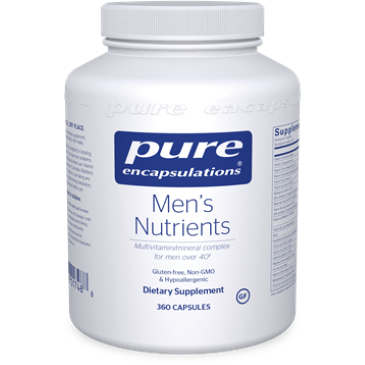 Multivitamin/mineral complex for men over 40  Indications • Men over 40  Vitamin/Mineral Distinctions • Yeast-derived selenium, vitamin D, and zinc for optimal prostate health  Special Features • MacularSynergy Complex • Supports the integrity of the macula and retina with 6 mg lutein and 1 mg zeaxanthin. Synergistic cofactors include vitamin C, vitamin E, zinc and carotenoids. • ProstaProtect Plus Supports prostate function with saw palmetto and pygeum and maintains healthy prostate cells with lycopene and green tea. Synergistic cofactors include selenium, vitamin D and zinc. • Cardio Polyphenol Complex helps maintain healthy blood vessel function with polyphenols from pomegranate, red wine concentrate, and grape seed extract. • EnduraBoost Blend Combines astragalus and maca to promote energy, endurance, and stamina. • Multivitamin and mineral complex for men over 40 • Supports prostate health • Made with hypoallergenic, vegetarian ingredients  Dietary Considerations Gluten Free Non-GMO  Serving Size:3 Capsule  Servings Per Container:120  Amount Per Serving% Daily Value Vitamin A (as beta carotene)1125 mcg125% Vitamin C (as ascorbic acid)125 mg139% Vitamin D (as cholecalciferol) (D3) (500 IU)12.5 mcg63% Vitamin E (as d-alpha tocopherol succinate)34 mg223% Vitamin K (as vitamin K1)50 mcg42% Thiamin (as thiamin HCl) (B1)12.5 mg1042% Riboflavin (as vitamin B2 and 17.35 mg 28% riboflavin 5’ phosphate (activated B2))17.4 mg1335% Niacin (as niacin and 67% niacinamide)38 mg234% Vitamin B6 (as pyridoxine HCI and 40% pyridoxal 5’ phosphate (activated B6))10.4 mg612% Folate (as Metafolin, L-5-MTHF)(400 mcg L-5-MTHF) DFE667 mcg167% Vitamin B12 (as methylcobalamin)250 mcg10417% Biotin400 mcg1333% Pantothenic acid (as calcium pantothenate) (B5)25 mg500% Choline (as choline bitartrate)20 mg4% Calcium (as calcium citrate)100 mg8% Iodine (as potassium iodide)100 mcg67% Magnesium (as magnesium citrate)100 mg24% Zinc (as zinc citrate)7.5 mg68% Selenium (from selenium yeast)100 mcg182% Manganese (as manganese citrate)1 mg43% Chromium (as chromium polynicotinate)100 mcg286% Potassium (as potassium citrate)50 mg1% Boron (as boron glycinate)1 mg Vanadium (as bis-glycinato oxo vanadium)50 mcg Proprietary mixed carotenoid blend (as lutein, lycopene, zeaxanthin)212 mcg Inositol62.5 mg Alpha lipoic acid37.5 mg MacularSynergy Complex FloraGLO Lutein3 mg Zeaxanthin500 mcg ProstaProtect Plus Saw palmetto (Serenoa repens) extract (fruit) 160 mg (standardized to contain 45% total fatty acids)160 mg Pygeum (Pygeum africanum) extract (bark) 25 mg (standardized to contain 2.5% total sterols)25 mg Lycopene500 mcg Green tea (Camellia sinensis) leaf(standardized to contain 65% total tea catechins and 23% epigallocatechin gallate (EGCG))25 mg CardioPhenol Complete Red wine grape (Vitis vinifera) concentrate (whole fruit) (standardized to containtotal polyphenols) 25%50 mg Grape (Vitis vinifera) extract (seed) (standardized to contain 92% polyphenols)50 mg Pomegranate (Punica granatum) extract (whole fruit) (standardized to contain 40% punicosides)25 mg EnduraBoost Blend Maca (Lepidium meyenii) extract (tuber)100 mg Astralgalus (Astragalus membranaceus) extract (root)50 mg  Other Ingredients vegetarian capsule (cellulose, water), ascorbyl palmitate  Suggested Use As a dietary supplement, take 3 capsules, 1–2 times daily, with meals.  Warning Not to be taken by pregnant or lactating women. Take with food. If you have liver problems, consult your health professional before use. Vitamin K may be contraindicated with Coumadin (Warfarin). If you have any health condition or are taking any medication, particularly blood thinning medication, consult your health professional before use. Keep out of the reach of children. Store in a cool, dry place. Use only if safety seal is intact.
