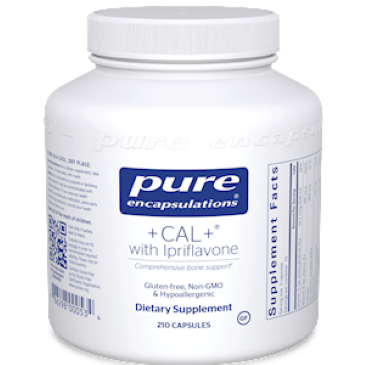 •Helps the body resist the onset of osteoporosis •Promotes bone health •Made with hypoallergenic, vegetarian ingredients+CAL+ with Ipriflavone is a mineral, vitamin and herb based formula created to promote skeletal system strength and help resist the onset of osteoporosis. One serving (7 capsules) contains 900 mg of calcium, a mineral essential to the functionality of the skeletal system, as well as other minerals that support and enhance calcium absorption.  Dietary Considerations Gluten FreeNon-GMO  Serving Size: 3 Vegetable Capsule  Servings Per Container: 70  Amount Per Serving % Daily Value Vitamin D (as cholecalciferol) (D3) (428 IU) 10.7 mcg 54%Vitamin K (as vitamin K1) 184 mcg 153%Calcium (as calcium citrate/malate) 400 mg 31%Magnesium (as magnesium aspartate) 49 mg 12%Zinc (as zinc picolinate) 12 mg 109%Copper (as copper glycinate) 1 mg 111%Manganese (as manganese aspartate) 2.1 mg 91%Vitamin K2 (as menaquinone-7) 30 mcgBoron (as boron glycinate) 0.85 mgIpriflavone 214 mgSilica (from bamboo) 9 mg  Other Ingredients vegetarian capsule (cellulose, water), ascorbyl palmitate  Suggested Use As a dietary supplement, take 3 capsules, 1-2 times daily, with meals.  Tamper Resistant Use only if safety seal is intact.  Warning Not to be taken by pregnant or lactating women. Vitamin K may be contraindicated with Coumadin (Warfarin). If you have any health condition or are taking any medication, particularly blood thinning medication, consult your health professional before use. Keep out of the reach of children.
