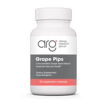 Flavonol proanthocyanidin extract from grape seeds, providing antioxidant activity against peroxyl free radicals. Allergy Research Group grape seed extract raw material contains not less than 95% total polyphenols, including 83% oligomeric proanthocyanidins (according to the industry standard, determined as the difference between total polyphenols and monomeric polyphenols). They are water soluble, and are generally well tolerated. Serving Size: 3 Capsule Servings Per Container: 30 Amount Per ServingGrape Seed Extract (95% Total Polyphenols, containing 83% Oligomeric Proanthocyanidins) 300 mg Other Ingredients: Hydroxypropyl methylcellulose, cellulose, L-leucine As a dietary supplement, 1 to 3 capsules one to three times daily with meals, or as directed by a healthcare practitioner. Keep in a cool, dry place, tightly capped.