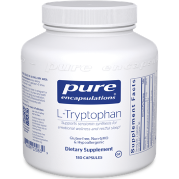 Enhances serotonin synthesis to support emotional well-being and restful sleepThe essential amino acid l-tryptophan is a serotonin precursor. Research indicates that l-tryptophan supplementation may support emotional well-being and restful sleep. In a double-blind, placebo-controlled study, l-tryptophan supported healthy emotional processing and promoted positive outlook in women.In a separate study, it supported healthy mood and lessened occasional irritability during the menstrual cycle. l-Tryptophan also supports healthy sleep quality, onset and duration. Additional research suggests that tryptophan may promote relaxation and help control occasional cravings. Vitamin B6 provides enhanced support as important cofactors involved in the metabolism of l-tryptophan.Supports emotional well-being and restful sleep Promotes healthy sleep quality, onset and duration Made with hypoallergenic, vegan ingredients Dietary Considerations Gluten FreeNon-GMO Serving Size: 1 Capsule Servings Per Container: 180 Amount Per Serving % Daily Value Vitamin B6 (as pyrid oxal 5'phosphate) (activated B6) 6.7 mg 394%Tryptopure 1000 mg Other Ingredients vegetable capsule (cellulose, water) Suggested Use As a dietary supplement, take 2 capsules , 1-3 times daily, between meals. Warning Not to be taken by pregnant or lactating women. If you have any health condition or are taking any medication, particularly psychiatric medication, consult your health professional before use. Do not use concurrently with antidepressants.Keep out of the reach of children. Use only if safety seal is intact.Store in a cool, dry place.