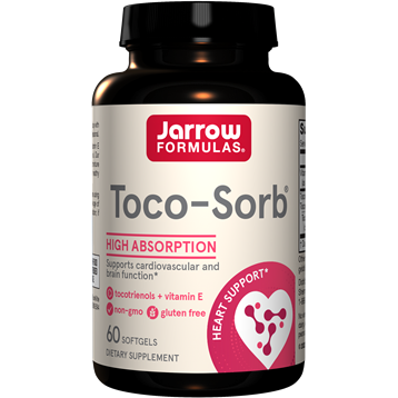Toco-Sorb tocotrienol-vitamin E complex utilizes SupraBio enhanced absorption system. Tocotrienols support healthy cardiovascular function by protecting against the oxidation of low density lipoproteins (i.e., LDL-cholesterol) and helping to maintain cholesterol levels already within the normal range. Toco-Sorb also supports healthy brain functions. Typically, bioavailability of tocotrienols is low. Patented SupraBio specialized lipid mixture, however, enhances tocotrienol uptake 2 to 3 times. Toco-Sorb is derived from natural full spectrum palm oil.  Dietary Considerations Wheat Free Dairy/ Milk Free Gluten Free Soy Free Egg Free Shellfish Free Fish Free Tree Nut Free Peanut Free  Suggested Use Take 1 softgel 1 or 2 times per day with a meal or as directed by your qualified health care consultant.  Serving Size: 1 SoftGel  Servings Per Container: 60  Amount Per Serving% Daily Value Vitamin E (as d-alpha tocopherol) (From EVNol SupraBio Palm Tocotrienol-Tocopherol Complex)(19 IU)13 mg90% Palm Tocotrienol-Tocopherol Complex (EVNol SupraBio)375 mg Tocotrienols (d-alpha, d-beta, d-gamma, d-delta)57 mg  Other Ingredients: Palm oil, polyoxyl castor oil, Softgel consists of bovine gelatin, glycerin, purified water  Warnings If you have a medical condition, are pregnant, lactating, trying to conceive, under the age of 18, or taking medications, consult your healthcare professional before using this product.Keep out of the reach of children. Store in a cool, dry place.