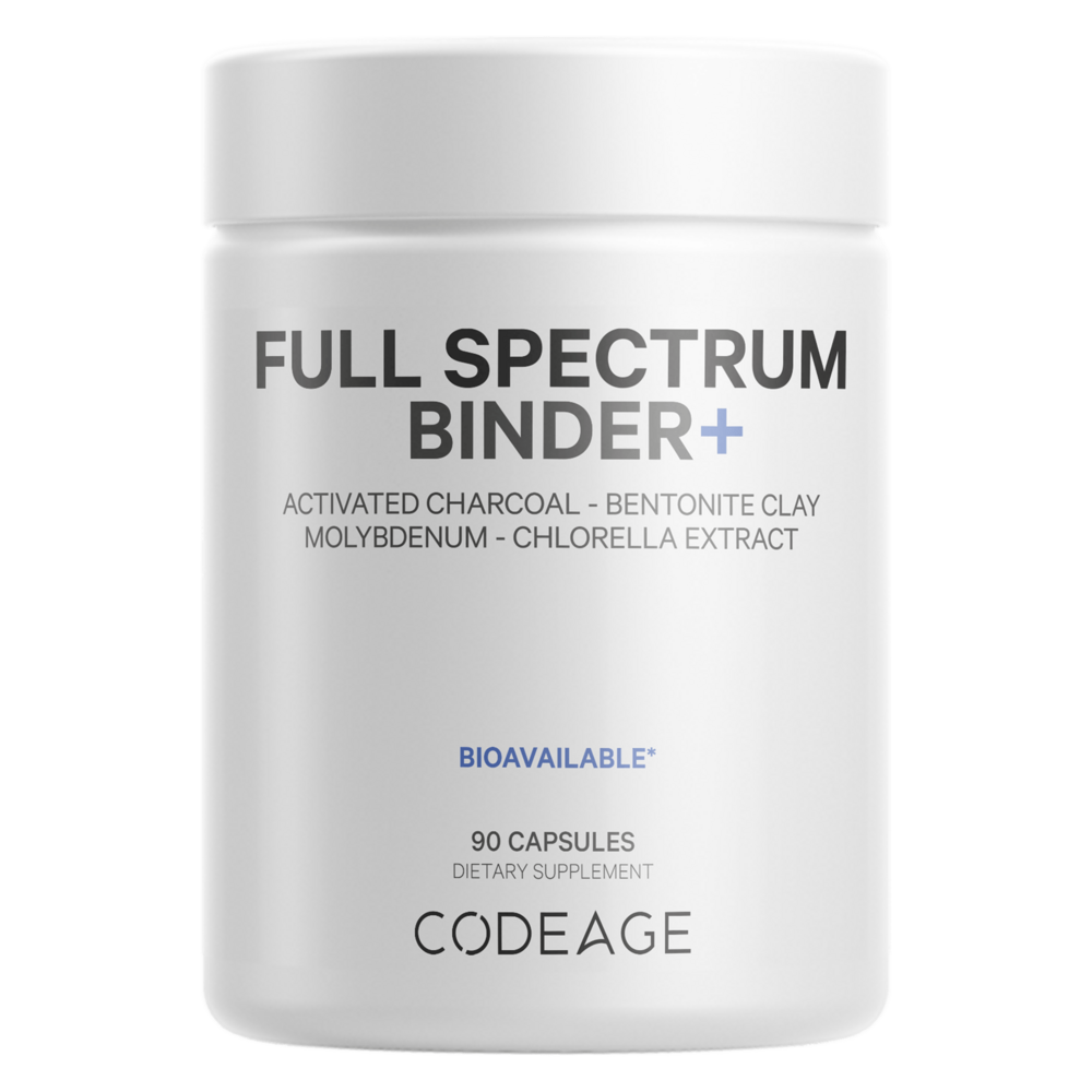 Codeage Binder + offers a premium blend of activated charcoal, bentonite clay, humic acid, fulvic acid, organic broccoli sprouts, organic chlorella extract, wild yucca root extract, and molybdenum in an all-in-one formula. This solution is an alternative herbal cleanse and is easy to use.The ingredients used in this proprietary blend are known to:● Support detoxification● Support a complete detox protocol● Act as herbal alternative for full-spectrum systemic binder Dietary considerations Gluten free Dairy free Soy free Suggested use Adults take 1 capsule daily, or as recommended by your healthcare practitioner, with 8 ounces of water or your favorite beverage. May be taken with or without food. Serving Size: 1 Capsule Servings per container: 90 Amount Per Serving Molybdenum ... 100 mcg(as Albion Molybdenum Glycinate Chelate) Proprietary Blend ... 600 mgActivated Charcoal, Organic Broccoli Sprout, Organic Chlorella Extract, Wild Yucca Root Extract, Bentonite Clay, Humic Acid, Fulvic Acid Other Ingredients Methylcellulose Capsule, Microcrystalline Cellulose. Warnings As with any dietary supplement, consult your healthcare practitioner before using this product, especially if you are pregnant, nursing, or are otherwise under medical supervision. Discontinue use and consult your doctor if any adverse reactions occur. Discontinue use two weeks prior to surgery. Please use caution if you have allergies or sensitivities to any of the listed ingredients. Not intended for those under the age of 18.