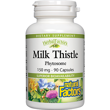Natural Factors Milk Thistle extract contains standardized silymarin and is considered to be one of the highest quality milk thistle extracts in the world. Research has shown that milk thistle extract promotes healthy liver function.*  Dietary Considerations Wheat Free Dairy/ Milk Free Gluten Free Yeast Free Sugar Free Preservative Free Salt Free Corn Free Free of Artificial Colors/Flavors Egg Free Shellfish Free Non-GMO Fish Free Tree Nut Free  Serving Size:1 Capsule  Servings Per Container:90  Amount Per Serving Milk Thistle (silymarin) Phytosome (Providing 22.5 mg silybin)150 mg Milk Thistle (Silybum marianum) extract (seed)50 mg Dandelion (Taraxacum officinale) (root)40 mg Turmeric (Curcuma longa) (root)40 mg Artichoke (Cynara scolymus) (leaf)40 mg  Other Ingredients: Gelatin capsule (gelatin, purified water), rice powder, magnesium stearate (vegetable grade)  Suggested Usage: 1 capsule 1 - 3 times per day with meals or as directed by a health professional. Keep out of reach of children. Contains soy. Contains no artificial preservatives, color or sweeteners; no corn, dairy, gluten or wheat. Sealed for your protection. Do not use if seal is broken. For freshness, store in a cool, dry place. As with any supplement, consult your health professional before use if you are pregnant, breastfeeding, or trying to conceive, or if you are taking medication,have a medical condition, or anticipate surgery.
