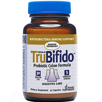 Dietary Supplement Probiotic Colon Formula for Digestive Care. TruBifido is a high potency, multi-strain probiotic protected by SEVEN U.S. Patents covering acid-proof delivery and prebiotic stimulation. Each batch is laboratory tested to meet strict quality control standards; guaranteed at time of expiration. Best if refrigerated. Refrigerate upon arrival.  Serving Size:1 Capsule  Servings Per Container:30  Amount Per Serving Bifidobacterium lactis 21 billion CFU* ** (Strain BL-04) Bifidobacterium bifidum 2 billion CFU* ** (Strain BB-06) Bifidobacterium lactis 3 billion CFU* ** (Strain Bi-07) Bifidobacterium lactis 2 billion CFU* ** (Strain HN019) Bifidobacterium breve 2 billion CFU* ** (Strain BB-03)  Other Ingredients: Microcrystalline Cellulose,, Sodium Alginate, Hydroxypropyl Methyl Cellulose (capsule shell), Trisodium Phosphate, Magnesium Stearate, Silicon Dioxide, Ascorbic Acid, LactoStim (Sunflower Lecithin + Oleic Acid), Calcium Silicate  Suggested Use: Take 1 capsule daily for two weeks. Thereafter, take 1 capsule every 3 days to maintain digestive care. If additional supplementation is desired, return to 1 capsule daily use. TruBifido can be taken with antibiotics; allow at least 3 hours separation. *CFU= Colony Forming Units  Contains No: Milk, Eggs, Gluten, Wheat, Soy, Casein, Nuts, Seafood, or Beef Products  Warning: If you are pregnant, nursing, on medication or have any medical condition consult a health care professional before using this product. Discontinue use and consult a doctor if any adverse reaction occurs. Keep out of reach of children.