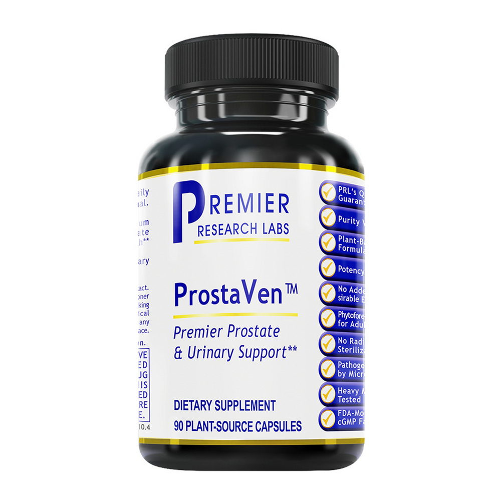ProstaVen, Premier. Prostate Urinary Support. Dietary Supplement, 60 Plant-Source Capsules.  Dietary considerations Fish free Shellfish free Animal product free  Suggested use Take 3 capsules daily or as directed by a health professional.  Serving Size: 3 Capsules  Servings per container: 30  Amount Per Serving Calcium … 63 mg (as carbonate from Aquamin F Algae) Organic Saw Palmetto … 282 mg(berry) (Serenoa repens) Phytosterols … 258 mg (standardized to contain 40% beta-sitosterol) Organic Olive Leaf … 216 mg (Olea europaea) Calcified Red Algae … 216 mg (Lithothamion sp) Hydrangea … 84 mg (Root) (Hydrangea arborescens) Organic Milk Thistle … 84 mg (seed) (Silybum marianum) Fermented Organic Cordyceps … 84 mg (mycelia) (Cordyceps sinesis) Organic Turmeric … 84 mg (rhizome) (Curcuma longa)  Other Ingredients Plant-Source Capsules (cellulose,water)  Warnings Use only if seal is intact. If pregnant or nursing, consult a health professional before taking this or any product. Keep out of reach of children.