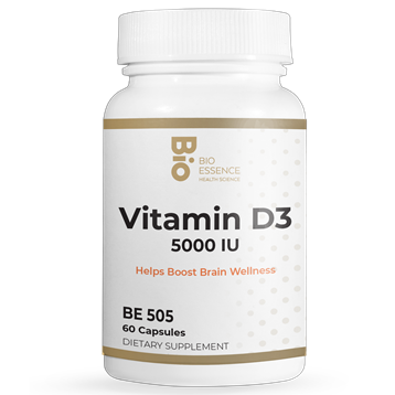 Description Vitamin D is called the sunshine vitamin because your skin manufactures it when exposed to sunlight, but that shouldn’t be your only source. A vitamin D supplement goes a long way. Bioessence recommends about 125 mcg (5,000 IU) to 200 mcg (8,000 IU) of vitamin D3 a day. If your multivitamin already delivers 25-75 mcg (1,000–3,000 IU) of vitamin D, vitamin D3 125 mcg (5,000 IU) is perfect for achieving optimal levels. Enhances calcium absorption* Promotes healthy bones* Supports mind and energy wellness* Dietary Considerations Wheat Free Dairy/ Milk Free Soy Free Yeast Free Preservative Free Free of Artificial Colors/Flavors Non-GMO Suggested Use Adults take 1 capsule daily with meal. Serving Size: 1 Capsule Servings Per Container: 60 Amount Per Serving% Daily Value Vitamin D3 (as cholecalciferol)125 mcg625% Other Ingredients: Rice flour, gelatin capsule Warnings Please consult with your physician before taking this product.