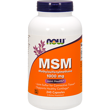 MSM (Methylsulfonylmethane) is a sulfur-bearing compound that is naturally present in very small amounts in fruits, vegetables, grains, animal products, and some algae. Sulfur compounds are found in all body cells and are indispensable for life.* MSM, in its role in the body's sulfur cycle, helps to create the chemical links needed to form and maintain numerous different types of structural tissues of the human body, including connective tissues, such as articular cartilage and skin.* Natural color variation may occur in this product. • Methylsulphonylmethane • Joint Sulfur for Connective Tissue* • Supports Healthy Cartilage*  Serving Size:2 Capsule  Servings Per Container:120  Amount Per Serving MSM (Mehtylsulphonylmethane)2 g  Other Ingredients: Gelatin (capsule), Stearic Acid, Magnesium Stearate  SUGGESTED USAGE: As a dietary supplement, take 2 capsules 1-2 times daily with meals. If intestinal gas occurs, reduce dosage. NOW MSM is tested to conain a minimum of 99.7% purity. Contains no sugar, salt, starch, yeast, wheat, gluten, corn, soy, milk, egg, shellfish or preservatives. Store in a cool, dry place. Keep out of reach of children. Do not eat freshness packet. Keep in bottle.