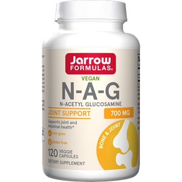 N-Acetyl Glucosamine is an aminosaccharide, synthesized from glucose and the amino acid L-glutamine, that has been stabilized by complexing it to an acetyl group. N-Acetyl Glucosamine is the body’s precursor to hyaluronic acid, which is part of the synovial fluid that lubricates joints.* N-A-G combines with mucin secreted from goblet cells to form the glycocalyx, a protective layer of glycoproteins and polysaccharides that lines the digestive tract.* N-Acetyl Glucosamine is the versatile form of glucosamine for joint and intestinal tissue.* For best results, use with Jarrow Formulas JarroSil, the biologically Activated Silicon  Dietary Considerations Wheat Free Dairy/ Milk Free Gluten Free Soy Free Egg Free Shellfish Free Tree Nut Free Peanut Free  Suggested Use Take 1 capsule 1 to 2 times per day or as directed by your qualified healthcare professional.  Serving Size: 1 Vegetable Capsule  Servings Per Container: 120  Amount Per Serving N-Acetyl-D-Glucosamine700 mg  Other Ingredients: Cellulose, Silicon dioxide, Magnesium stearate (vegetable source), Capsule consists of hydroxypropylmethylcellulose  Warnings Contains: Shellfish (prawn and crab shell). Do not use if allergic to shellfish. If you have a medical condition, are pregnant, lactating, trying to conceive, under the age of 18, or taking medications, consult your healthcare professional before using this product. Keep out of the reach of children. Store in a cool, dry place Â