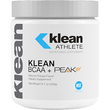 Description Klean BCAA + PEAK ATP supplies a 2:1:1 ratio of the branched-chain amino acids leucine, isoleucine and valine, as well as 400 mg of ATP in each serving, to provide a direct source of energy to the muscles for performance and recovery.* To achieve optimal results, athletes require consistent training, the proper fuel and adequate recovery. Amino acids are the building blocks of all body proteins, and branched-chain amino acids are crucial to an athlete’s recovery and muscle tissue repair. Klean BCAA + PEAK ATP supplies a 2:1:1 ratio of the branched-chain amino acids leucine, isoleucine and valine, as well as 400 mg of ATP in each serving. PEAK ATP has been shown to support peak physical performance by increasing strength, power and muscle gain, allowing the body to train longer, harder and stronger.* Together, these nutrients provide a direct source of energy to the muscles for performance and recovery.*  Dietary Considerations Wheat Free Dairy/ Milk Free Gluten Free Soy Free Yeast Free Preservative Free Free of Artificial Colors/Flavors Non-GMO  Suggested Use Mix one scoop with 8-10 oz. of water or other beverage and blend well. This product is best taken 30 minutes before exercise. It can also be consumed during and post-workout. Consume one to two servings daily without food, including rest days.  Serving Size: 1 Scoop  Servings Per Container: 30  Amount Per Serving Calories10 Total Carbohydrate2.5 g Sugar Alcohol1 g L-Leucine2 g L-Isoleucine1 g L-Valine1 g Peak ATP (Adenosine 5’- Triphosphate disodium)400 mg  Other Ingredients: Natural orange flavor with other natural flavors, xylitol, citric acid, malic acid, stevia leaf extract, monk fruit extract, sunflower lecithin, annatto (for color)  Warnings This product contains NO yeast, wheat, gluten, milk/dairy, soy, artificial flavoring, artificial preservatives or genetically modified organisms (GMOs) KEEP OUT OF REACH OF CHILDREN. NOT INTENDED FOR ANIMALS. For optimal storage conditions, store in a cool, dry place. (59°-77°F/15°-25°C) (35-65% relative humidity) Tamper resistant package, do not use if outer seal is missing.