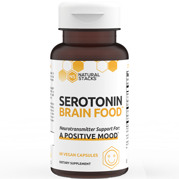 Serotonin Brain Food is designed with the precursors and cofactors to support the body’s natural production of serotonin, a neurotransmitter essential to mental well being.Research suggests that the natural compounds in Serotonin Brain Food are associated with support for a positive mood and stress relief. Dietary considerations Gluten free Dairy free Egg free Fish free Animal product free Crustacean Shellfish Free Non-GMO Suggested use Take 2-3 capsules to support a happy and positive mindset, or as needed anytime you’re in a negative mood. Do not exceed 6 capsules per day. Serving Size: 3 Capsules Amount Per Serving Vitamin B-3 … 171 mg (from Niacinamide and L-Tryptophan) Magnesium … 50 mg (as Magnesium glycinate) Zinc … 20 mg (as Zinc glycinate) L-Tryptophan … 1250 mg Rhodiola Rosea … 400 mg(root) extract (Standardized to 3% total rosavins, min 1% salidrosides) Other Ingredients Vegetable capsule (cellulose, water), ascorbyl palmitate, silica. Gluten Free, Non GMO, Vegan, Paleo Friendly. Warning Consult a healthcare practitioner before taking this or any nutritional supplement if you are pregnant/nursing, have or suspect a medical condition, are taking any medications (particularly SSRIs or MAOIs), or other non-Natural Stacks dietary supplements.Do not use if safety seal is broken or missing.Store in a cool dry place. Keep out of reach of children.