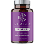 Start getting the restorative sleep your body needs to regenerate and perform at its peak with Qualia Night. This unique patent-pending formula integrates clinically studied ingredients to support deep sleep, cognition, immunity, and long-term sleep performance.* • Supports Deep Regenerative Sleep* • Amplifies Next Day Energy & Performance* • Enhances Mental Clarity & Brain Health* • Promotes Healthy Immune Functions*  Serving Size:4 Vegetable Capsule  Servings Per Container:15  Amount Per Serving% Daily Value Vitamin B6 (as pyridoxal 5'-phosphate)1.6 mg94% Magnesium (as magnesium glycinate)50 mg11% Reishi Mushroom (Ganoderma lucidum) Fruiting Body Extract500 mg Holy Basil (Ocimum sanctum) Leaf Extract250 mg Hawthorn Leaf and Flower Extract160 mg Gotu Kola (Centella asiatica) Whole Herb Extract150 mg KSM-66 Ashwagandha (Withania somnifera) Root Extract150 mg Schisandra chinensis Fruit Extract130 mg Wild Blueberry Fruit Extract100 mg Polygala tenuifolia Root Extract100 mg Ziziphus jujuba Seed Extract100 mg Betaine (trimethylglycine)100 mg L-Tryptophan100 mg Olivex Olive Fruit Extract80 mg Sesame Seed Extract50 mg L-Theanine50 mg White Peony (Paeonia lactiflora) Root Extract50 mg AstaPure Haematococcus pluvialis Microalgae Extract (3% astaxanthin)33 mg y-Oryzanol25 mg Uridine (as Uridine-5'-monophosphoric acid disodium salt)25 mg Grapefruit Whole Fruit Extract20 mg Vineatrol20 Grapevine Extract20 mg Saffron Stigma Extract15 mg Lycopene4 mg Quercetin (as Quercetin dihydrate)2.5 mg  Other Ingredients: Hypromellose, Organic Rice Concentrate, Organic Rice Extract Blend Take up to 4 capsules at dinner or several hours before bedtime. This product is non-sedating and designed to be taken earlier in the evening (unlike before bedtime sleep aids). ** Night is designed to be taken 5 days on and 2 days off each week. It does not matter if the "off-cycle" days are consecutive or apart, so long as they happen each week. When using dietary supplements, please consult with your physician if you are undergoing treatment for a medical condition or if you are pregnant or lactating.