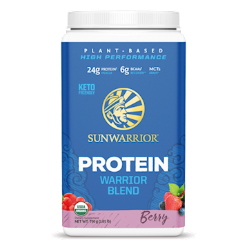Description Warrior Blend Plant-Based Protein provides a full amino acid profile with all organic fermented pea protein, goji berry protein, and hemp seed protein and MCTs from coconut. Warrior Blend is easy to digest so your body can quickly assimilate and use the protein. Organic Plant-Based Protein • Great For Pre and Post-Workout • Keto and Paleo Friendly • BCAAs - A Full Amino Acid Profile to Build LEAN MUSCLE • Soy-Free, Gluten-Free, No Added Sugars • High in Glutamine, Arginine, Lysine, and Leucine Warrior blend fuses the power of several rich protein sources into one smooth, great-tasting formula that is overwhelmingly superior to the individual components alone. Medium-chain triglycerides from coconut work synergistically with the other ingredients to create a unique vegan protein exceptionally rich in amino acids and BCAAs.  Dietary Considerations Dairy/ Milk Free Gluten Free Soy Free Vegan  Suggested Use: Mix, shake, or blend 1 scoop with 10 oz of your favorite beverage. Refrigerate and use prepared product same day. Keep package out of direct light and away from heat.  Serving Size:1 Scoop  Servings Per Container:30  Amount per Serving Calories 90 Total Carbohydrate 5 g 2% Dietary Fiber 1 g 4% Sugars 3 g Protein 17 g 34% Calcium 30 mg 3% Iron 5 mg 30% Sodium 210 mg 9% Proprietary Protein Blend: Organic Pea Protein, Organic Hemp Protein, Organic Goji Berry 21 g  Other Ingredients: Organic Berry Flavor, Organic Guar Gum, Sea Salt, Organic Stevia Extract, Organic Whole Ground Coconut. Contains Coconut.  Warnings Soy Free. No Sugar Added. Gluten Free. Dairy Free. Vegan. Allergen Notice: This product is manufactured in a facility that, may also manufacture products containing peanuts or tree nuts. Consult your physician before beginning a dietary regimen containing this product. Keep out of the reach of children. If you are nursing, pregnant, or considering pregnancy, consult your healthcare professional prior to using this product. ÂÂ