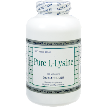 Dietary Supplement• Essential Amino Acid• Pharmaceutical Grade (USP)• Supports Membrane Health*Supplement FactsServing Size: 1 capsuleServings per Container: 250Amount per ServingL-Lysine 500 mg(from L-Lysine Mnohydrochloride)Other ingredients: Gelatin (Capsule), Stearic Acid (vegetable source), Cellulose, Rice Flour and Magnesium Stearate (vegetable source).Contains no sugar, salt, yeast, wheat, gluten, corn, soy, milk, egg, shellfish or preservatives.SUGGESTED USAGE: As a dietary supplement, take 1 capsule 1 to 3 times daily, with or between mealsKeep out of reach of children.Do not eat freshness packet. Keep in bottle.Store in a cool, dry place.*These statements have not been evaluated by the FDA. This product is not inteded to diagnose, treat, cure or prevent any disease.