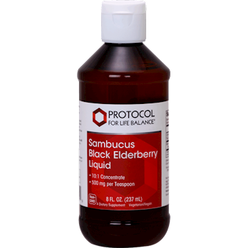 Black elderberry (Sambucus nigra) fruit has a long history of use as a tonic in traditional European herbal systems. Black elderberries are known to possess a variety of natural compounds that help to maintain health and well-being, such as potent, free radical-scavenging anthocyanins and other beneficial nutrients. Protocol For Life Balance Sambucus Black Elderberry Liquid Concentrate is a non-GMO supplement formulated with a 10:1 elderberry concentrate that delivers 500 mg per teaspoon serving.• 10:1 Concentrate• 500 mg per TeaspoonDietary ConsiderationsWheat FreeDairy/ Milk FreeGluten FreeVegetarianSoy FreeYeast FreeVeganEgg FreeShellfish FreeNon-GMOServing Size: 1 TeaspoonServings Per Container: 47Amount Per Serving % Daily ValueCalories 15Total Carbohydrate 4 g 1%Black Elderberry (Sambucus nigra) (Fruit) (10:1 Concentrate) 500 mgOther Ingredients:Vegetable Glycerin, De-ionized Water, Citric Acid, Potassium Sorbate (as preservative)Shake well before using. Take 1 teaspoon (5 mL) 1 to 3 times daily, or as directed by your healthcare practitioner. Can be taken directly, or mixed with water or juice.Not manufactured with yeast, wheat, gluten, soy, milk, egg, fish or shellfish ingredients.Produced in a GMP facility that processes other ingredients containing these allergens.Natural color variation may occur in this product. Non-GMO. Vegetarian/Vegan.Cautions/Interactions: Consult your healthcare practitioner if pregnant/nursing, taking medication, or have a medical condition.Keep out of reach of children.Store in a cool, dry, dark place after opening.