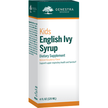Herbal combination supporting upper respiratory immune health in kids • Includes a soothing blend of English ivy, marshmallow and elderberry extracts • Supports upper respiratory health and function • Promotes oropharyngeal mucosal health and comfort • Delicious natural raspberry flavor • Convenient liquid formula suitable for children 3 years and older Kids English Ivy Syrup is a great-tasting combination of herbs traditionally used to support upper respiratory and immune health. It provides English ivy, an important source of a-hederin, which has been shown to support surfactant secretion and bronchiole function in preclinical research. Clinical trials have also demonstrated the beneficial effects of English ivy on supporting respiratory function in children. A mucilaginous herb, marshmallow contains polysaccharides that coat the mucosal lining of the respiratory tract. Clinical research supports its traditional use as a demulcent, promoting oropharyngeal mucosal health and providing soothing comfort to the airway. Kids English Ivy Syrup also includes elderberry, an herb well-recognized for its high anthocyanin content. Elderberry is traditionally used to help maintain a healthy immune system, providing specific support to the upper respiratory tract. Available in a delicious natural raspberry flavor, Kids English Ivy Syrup is a convenient way of supporting upper respiratory function and mucosal comfort in children.  Serving Size: 1 Teaspoon  Servings Per Container: 24  Amount Per Serving% Daily Value Calories 10 Total Carbohydrate 2 g 1% Marshmallow (Althaea officinalis) Root Extract (4:1) 125 mg English Ivy (Hedera helix) Leaf Extract (4-7:1) 40 mg European Elder (Sambucus nigra subsp. nigra) Fruit Extract (16:1) 25 mg  Other Ingredients Purified water, glycerin, xylitol, natural flavors, citric acid, xanthan gum, potassium sorbate  Suggested Use Children (6 years and older): Take 1 teaspoon 3 times daily or as recommended by your healthcare practitioner. Children (3-5 years): Take ½ teaspoon 3 times daily or as recommended by your healthcare practitioner. Take a few hours before or after taking medications or other supplements.  Warning Do not use if you are allergic to ivy. Consult your healthcare practitioner prior to use if you are taking any medication, or have any health condition. Hypersensitivity to European elder has been known to occur; in which case, discontinue use. Discontinue use in case of gastrointestinal upsets,such as abdominal cramps, nausea, vomiting or diarrhea. Use only if safety seal is intact. Keep out of the reach of children. Refer to outer packaging for complete information. Store in a cool, dry place.