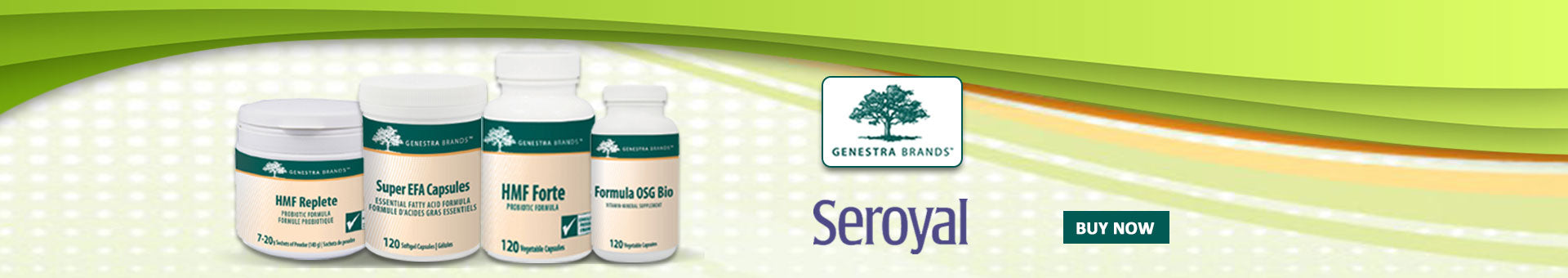 Seroyal's Genestra offers a wide variety of specialized nutritional and homeopathic supplements. These supplements include botanicals, phytonutrients, standardized extracts, amino acids, phylogenies, digestives, essential fatty acids, human microflora probiotics, proteins, vitamins, and minerals. Their high-quality Seroyal probiotics, such as HMF Intensive, HMF Forte, and HMF Super Powder, are very popular.