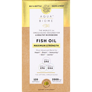 Description Aqua Biome's proprietary blend, with all of the omega-3 benefits for a vibrant microbiome.  Dietary Considerations Dairy/ Milk Free Gluten Free Soy Free Non-GMO  Suggested Use Adults take 2 softgels daily with food.  Serving Size: 2 SoftGel  Servings Per Container: 30  Amount Per Serving Calories20 Total fat1 g Total fatty acids + omega-3s1200 mg DHA (docosahexaenoic acid)480 mg EPA (eicosapentaenoic acid)240 mg DPA (docosapentaenoic acid)60 mg Other omegas and fatty acids420 mg  Other Ingredients: Gelatin capsule (fish,, gelatin, glycerin, purified water, and natural lemon oil flavor)  Warnings Contains: Fish (sourced from anchoveta, gelatin from tilapia) Non-GMO. Soy free. Dairy free. Gluten free. Consult with a physician prior to use if you are pregnant, nursing or taking any medications. Keep out of reach of children.