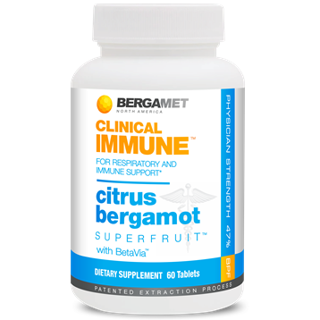 Description Clinical trials have shown that the ingredients in BergaMet Clinical IMMUNE can help support a healthy immune system.* Formulated with BetaVita, the world's strongest Citrus Bergamot SuperFruit, Olive Leaf Extract and other immune building ingredients. BergaMet Clinical IMMUNE is full of powerful antioxidants that help defend against free radicals and assist with metabolic health.*  Dietary Considerations Wheat Free Dairy/ Milk Free Gluten Free Preservative Free Vegan Free of Artificial Colors/Flavors Egg Free Lactose Free Non-GMO Fish Free  Suggested Use Take 1 tablet twice per day.  Serving Size: 2 Tablet  Servings Per Container: 30  Amount Per Serving% Daily Value Vitamin C (as ascorbate)500 mg556% Vitamin D50 mcg250% Vitamin E (as d-alpha tocopherol and d-alpha tocopheryl succinate)40 IU178% Zinc (as gluconate)12 mg109% Selenium (as L-selenomethionine)200 mcg364% Proprietary Blend:1170 mg BetaVia Complete Bergamot 47% BPF Alpha Lipoic Acid (thioctic acid) Olive Leaf Extract (20% Oleuropein) L-Glutamine  Other Ingredients: Cellulose, silicon dioxide, cellulose gum, magnesium stearate (vegetable source), carnauba wax  Warnings Do not take during pregnancy or when lactating. Supplements should not replace a balanced diet. Consult your healthcare provider prior to taking any supplement. Do not use if seal is broken. Store in a dry, cool place.