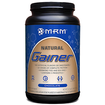 MRM’s Natural Gainer provides all the essential amino acids to support lean muscle growth.* Natural Protein Optimizer is a special combination of hormone and BSE free, non-denatured and low temperature processed whey protein concentrate and isolate along with micellar casein to provide both fast and slow digesting proteins. These protein sources contain essential amino acids, especially Branched Chain Amino Acid (BCAAs), which are proven to support lean muscle growth.* MRM emphasizes the amount of protein per serving since it is the most prominent macronutrient proven to increase lean muscle mass and maintain a healthy weight.* To aid digestion and support gut health MRM has added enzymes and probiotics.* The protein digesting enzymes start working immediately to help breakdown the protein so it can be assimilated. The 5 strains of probiotics are microencapsulated so they can survive the harsh environment of the stomach and be released into the intestines where they may colonize, thrive, improve the biochemistry of the digestive tract for better immune health, and digestive health so you can get the most benefit from the foods you eat.* MRM Natural Gainer provides good calories from a clean carbohydrate complex consisting of trehalose, VitaFiber™(Isomalto-oligosaccharide), and maltodextrin. This preferable combination of fast and slow digesting carbohydrates and fiber provides calories that are less prone to increase “body fat†while offering a long-lasting source of energy and not creating blood sugar spikes, which can be detrimental to healthy weight gain.* Although fat is a highly concentrated source of energy (double that of protein and carbohydrates), the fats in MRM’s Natural Gainer blend were precisely chosen for their ability to offer unique benefits to the heart and cell membrane.* Sunflower oil is a heart healthy oil high in unsaturated fats, which are mostly deficient in the standard American diet.*  Dietary Considerations Wheat Free Gluten Free Yeast Free Free of Artificial Colors/Flavors Egg Free Shellfish Free  Serving Size:2 Scoop  Servings Per Container:18  Amount Per Serving Calories 360 Calories from Fat 60 Sugars 6g Total Fat 7g Saturated Fat 2g Trans Fat 0g Cholesterol 65mg Sodium 150mg Potassium 240mg Total Carbohydrates 49g Dietary Fiber 5g Sugars 6g Protein 25g Omega-3 Blend (Algae Source of DHA & EPA) 32mg Typical Amino Acid Profile Per 84g - 2 Scoop Alanine 1180mg Arginine 590mg Aspartic Acid 2810mg Cysteine 320mg Glutamic Acid 4410mg Glycine 590mg Histidine 370mg Isoleucine 1630mg Leucine 2400mg Lysine 2270mg Methionine 490mg Phenylalanine 780mg Proline 1570mg Serine 1340mg Threonine 1530mg Tryptophan 560mg Tyrosine 650mg Valine 1530mg  Ingredients: Natural Protein Optimizer [Ultra-filtered, Low Temperature Processed Whey Protein Concentrate (milk), Instantized Calcium Caseinate (milk), Crossflow Microfiltered Whey Protein Isolate (milk), Micellar Casein (milk), Soy Lecithin & Digest-All AP (a vegan enzyme blend)], Maltodextrin, Opti-Fat [sunflower oil, soy lecithin, medium chain triglycerides, omega-3 oil (from algae), Conjugated Linoleic Acid], Fructose, VitaFiber (Isomalto-oligosaccharide), Natural Vanilla Flavors, TreLEAFia (Stevia Leaf Extract, Trehalose, and Monk Fruit Extract) and Salt. Contains milk and soy. Contains NO egg, peanut, tree nut, fish, shellfish, wheat, gluten or yeast. Contains less than 1% soy lecithin. No MSG. NO Aspartame or Acesulfame K  Suggested Usage: Add one serving (2 scoops) to 8-10 ounces of water, skim milk, whole milk or your favorite beverage and shake for 30-60 seconds. Use a serving once a day, or ½ of a serving 2 times a day.