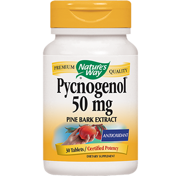 Amount Per Serving Vitamin E (as d-alpha tocopheryl ) 30 IU  Calcium 24 mg  Pine, dried extract (bark) (Pycnogenol) 50 mg   Other ingredients: Dicalcium phospate, Rosemary (leaf), Cellulose, Malodextrin, Modified cellulose gum, Steartic acid, Silica     Recommended Dosage: One tablet for each 50-60 pounds of bod weight for the first week or two. Thereafter, adjust intake to one tablet for each 100-120 pounds of body weight.ÂÂ